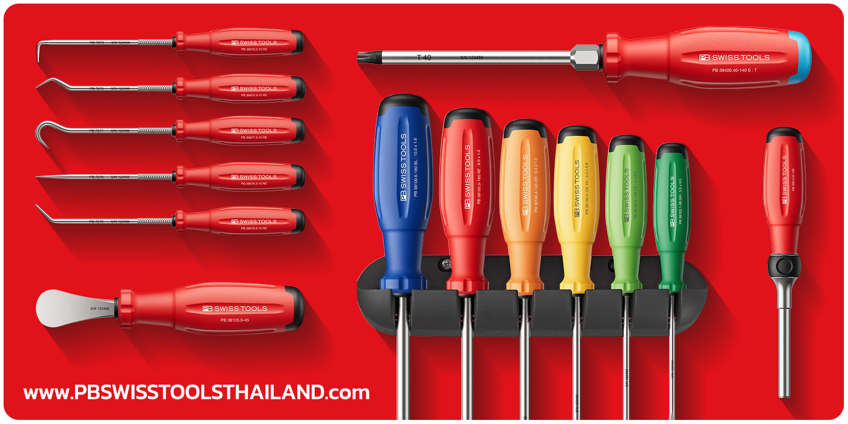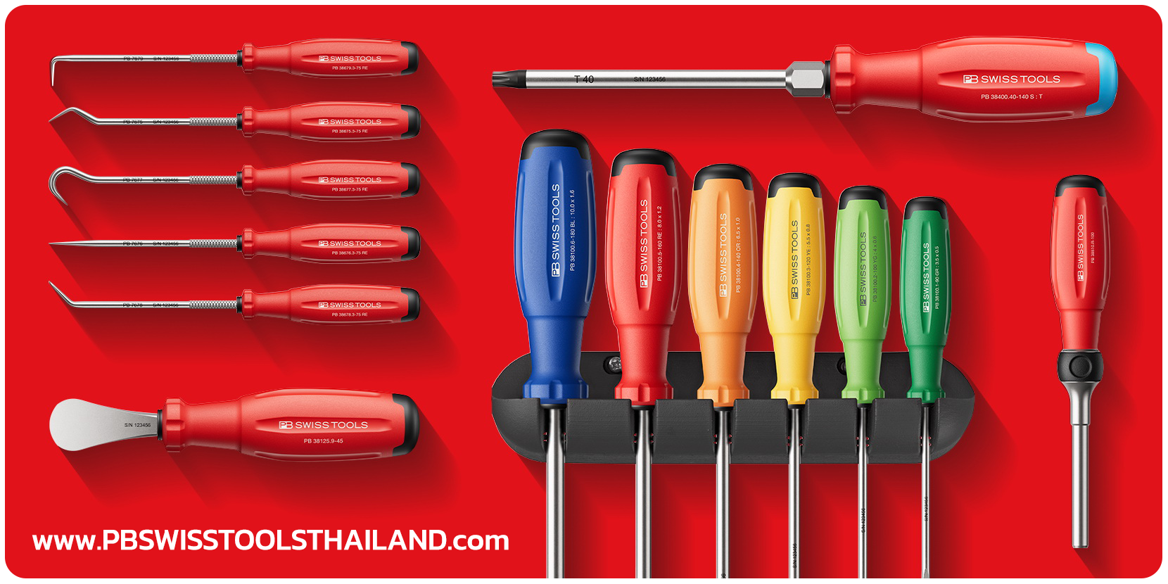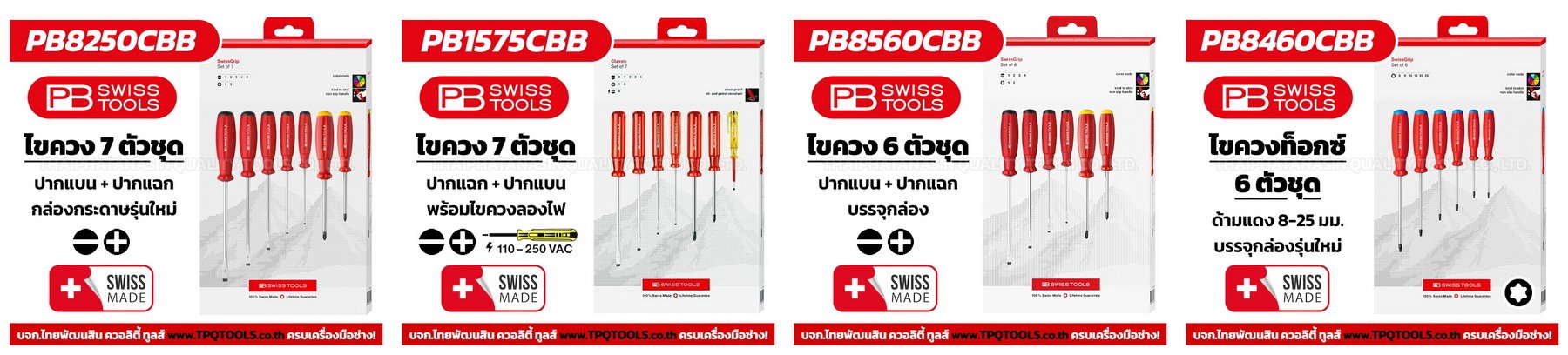 ผลิตภัณฑ์ของ PB Swiss Tools ครอบคลุมเครื่องมือช่างหลากหลายประเภท เช่น