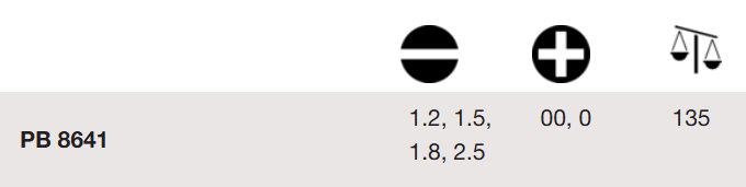 • ประกอบด้วยไขควงปากแบน 1.2, 1.5, 1.8, 2.5 / ปากแฉก PH00, 0
