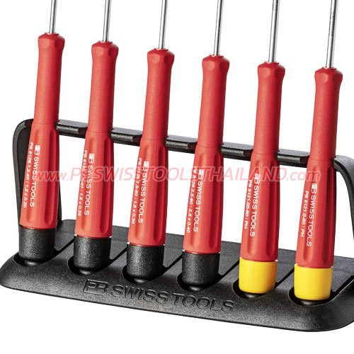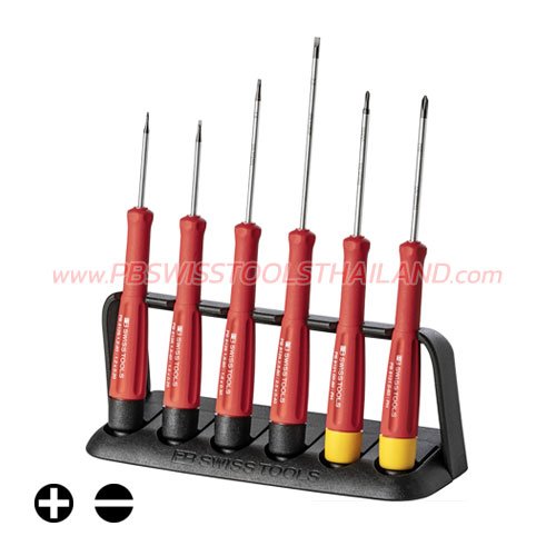 PB8641 ชุดไขควงไฟฟ้าด้ามเรียวเล็ก 6 ตัวชุด ปากแบน+ปากแฉก พร้อมแท่นวาง (ใช้กับงานทั่วไป-งานไฟฟ้า) PB SWISS TOOLS